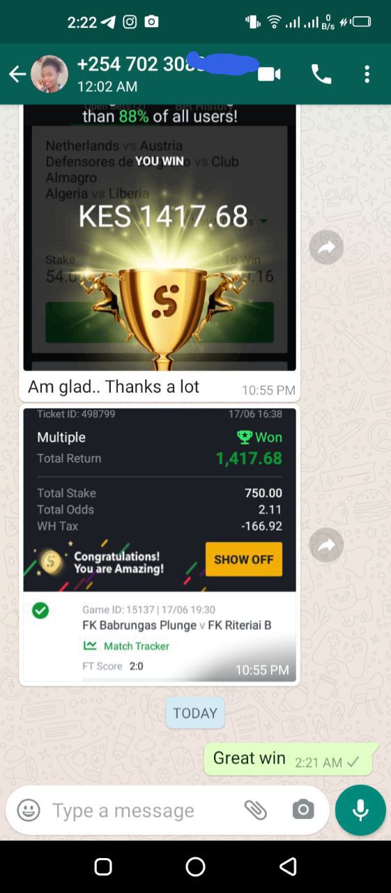 Friends Kindly Confirm yesterday's 100% Premium VIP winning ticke hyts as POSTED IN The PREMIUM VIP group.We told you to start your week in the PREMIUM VIP and you Ignored now see you missed yesterday's great winnings💪💪THE MORE YOU KEEP ON SAYING I'LL JOIN TOMORROW THE MORE YOU'LL KEEP ON MISSING ALOT FROM OUR SUPER VIP GROUP,GAMBLING IS ALL ABOUT TAKING RISK FOR YOU TO INVEST.IF YOU WANT TO MAKE SOME QUICK CASH GET REGISTERED INTO OUR VIP GROUP TODAY AND START YOUR WEEK WITH WINNING CONGRATULATIONS FROM OUR VIP TICKETS🤑🤑🤑👇👇ALSO REMEMBER THAT WE HAVE ALREADY POSTED TODAY'S VIP TICKETS IN THE VIP GROUP...DON'T MISS OUT, MAKE YOUR PAYMENT NOW